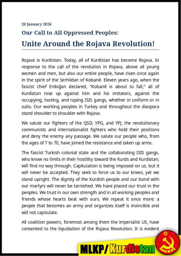 [eng] MLKP/Kurdistan: Unite around the Rojava Revolution!